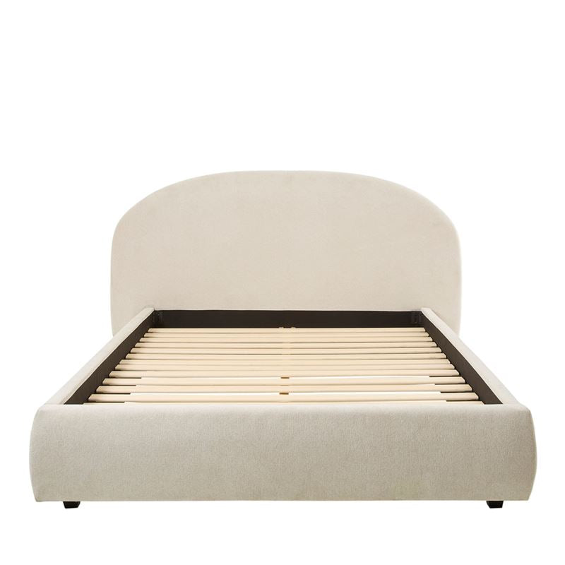 Transform your bedroom into a haven of elegance and sophistication with our Arzon full bed. Featured in curved and plush, oversized headboard, this bed that's fully upholstered in soft textured fabric seamlessly blends comfort, functionality with luxury.