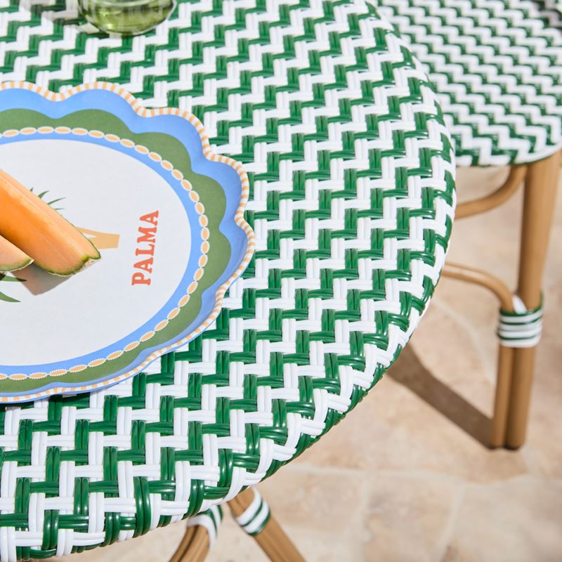Aluminium with synthetic wicker Bistro Set includes x2 Chairs and x1 Side Table Chair: 56cm (W) x 60cm (D) x 88cm (H) (each)Side Table: 60cm (D) x 76cm (H)Total Weight: 9kg *Legs to be fitted Exuding Parisian Café Charm, with its delicate yet durable frame and quintessential woven seat and...