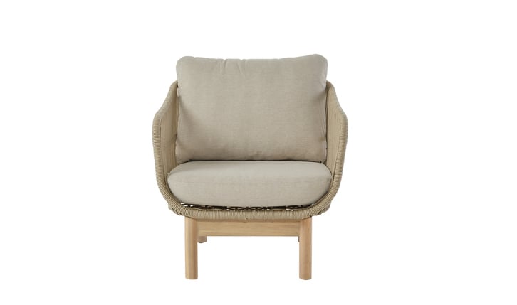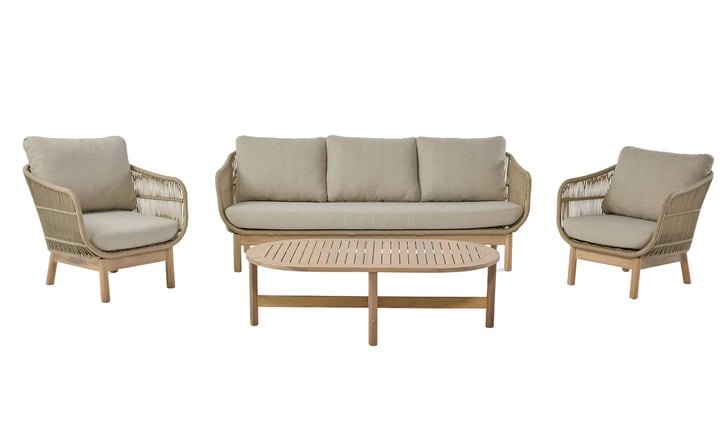 4-piece outdoor lounge setting includes a 3-seater sofa, two armchairs, and a coffee table Constructed from solid acacia wood for durability Handwoven rope seat and back for enhanced support No assembly required beyond attaching the legs Classic design with a relaxed coastal aesthetic Water and UV resistant for all-weather use...