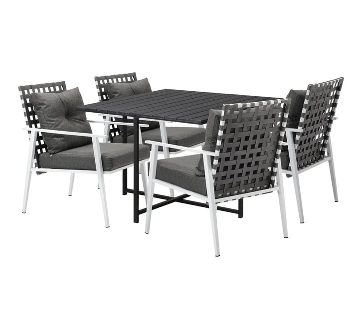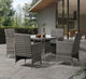 4 seater outdoor dining set suitable for various occasions Tabletop made from durable wood-plastic composite with a natural wood grain finish Wide rattan backrest for added comfort Cushions included with removable covers for easy cleaning Rust-resistant powder-coated metal frame for longevity Weather-resistant design suitable for all seasons Sturdy construction ensures...